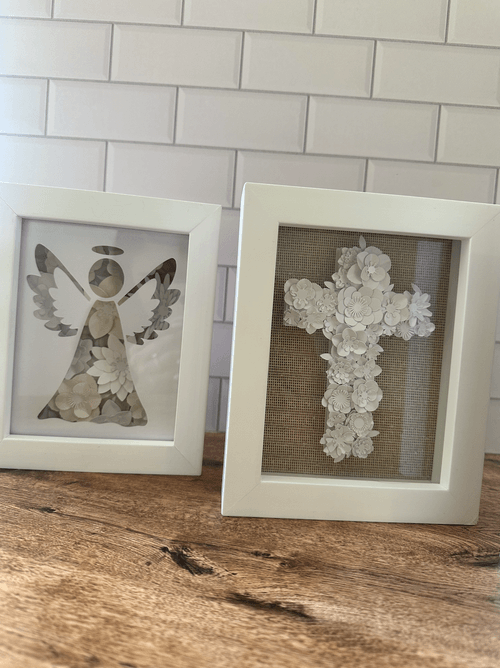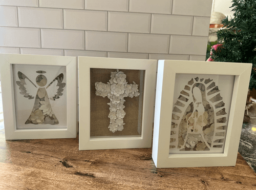 A beautiful devotion of our Lady of Our Guardian Angel made with flowers in different palets of color.